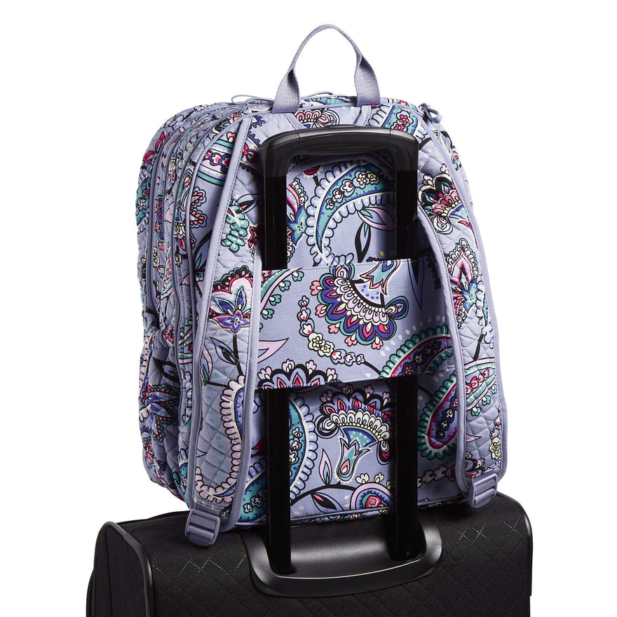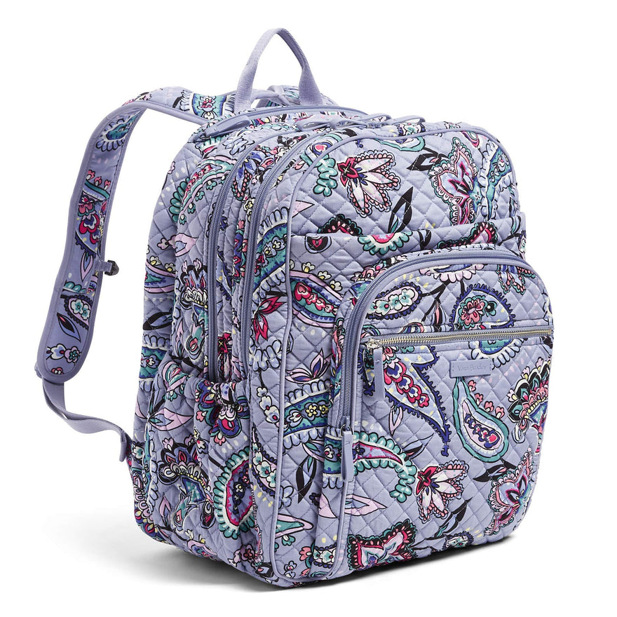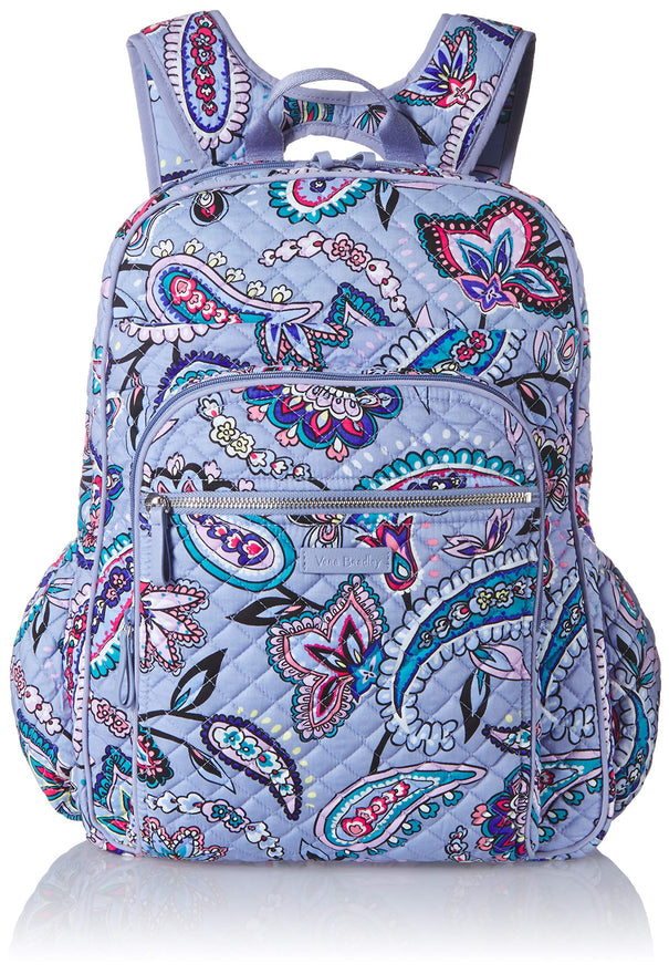 Details: Vera Bradley has crafted a backpack that will get you to your destination with comfort and ease. The iconic XL campus backpack is the fashionable solution for storing your everyday school and work essentials - measuring 16.75 inches high, 12 inches wide, and 8.75 inch in diameter With a 2.75 inch Top handle drop and 32 inch adjustable straps. Fully lined with printed polyester material, The spacious interior features one slip pocket, two mesh slip pockets, and a cushioned laptop or tablet sleeve to secure your work material and tech essentials. Crafted from lightweight, polyester microfiber, this bag has a zip around closure that securely fastens your tech essentials and organizes all the accessories that play into your work day. The exterior features two side slip pockets, two horizontal zip pockets, and a front zip compartment with three slip pockets, four pen slips and an id window to keep your essential supplies organized and quick to access. You can throw your most important materials together quickly and safely with ease and organization in the iconic XL campus backpack. When quality material meets precise craftsmanship, you get a work necessity made to last through all of life's journeys. Care: machine wash cold, gentle cycle, use only non-chlorine bleach as needed; line dry.