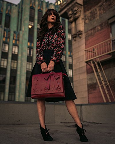 - Adjustable and detachable shoulder strap with 20" - 55'' drop. Flap top with strong magnets snaps closures; The bow in the front adds a nice feminine touch to a professional looking bag.
