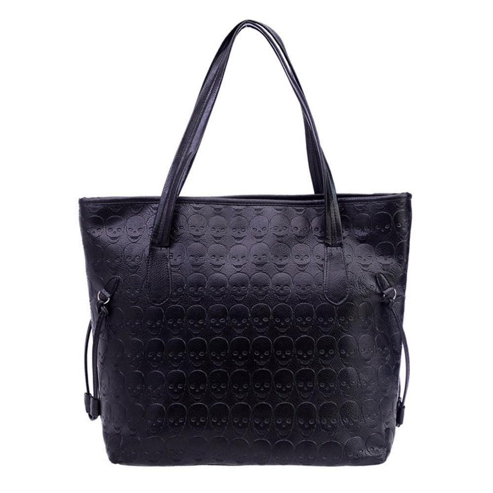 Women Shoulder Bag Fashion Handbag Retro Skull Embossing Leather Ladies Shoulder Bag Large Tote