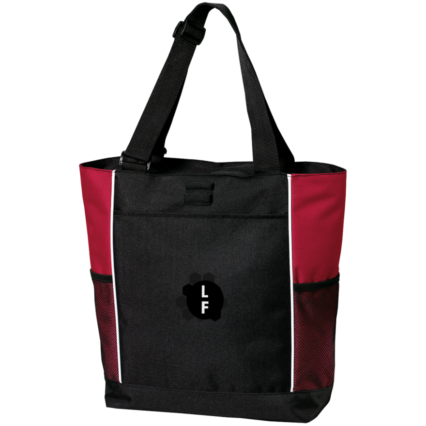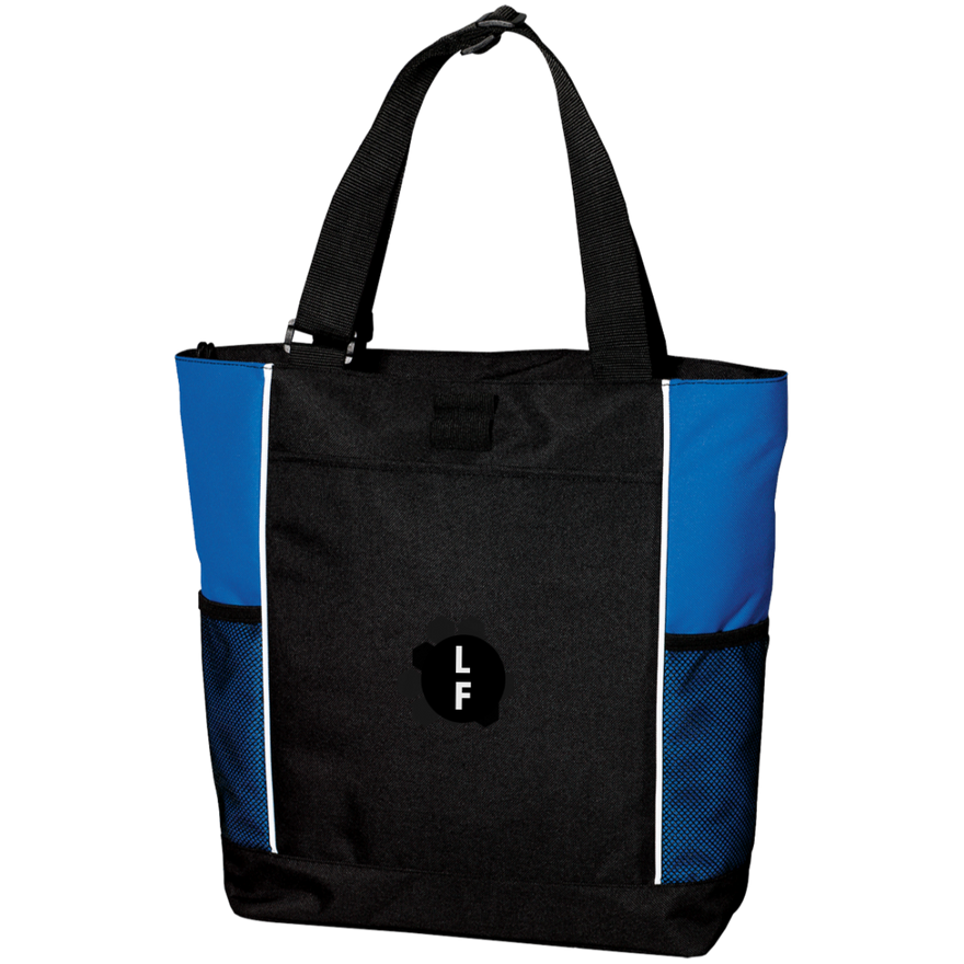 Zippered opening; Pen holder loops; Adjustable web handles; Large front pocket; Two side water bottle holders