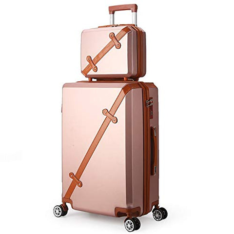 TangFeii-trunk Boarding Luggage Universal 2 Piece Set Spinner Luggage Expandable Travel Suitcase 20in 14in/24in 14in Wheel Upright Carry-on Luggag (Color : Rose Gold, Size : 20in+14in)