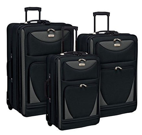 3 Piece Expandable and Highly Durable "Sky-View Collection" Luggage Set with 28" Suitcase, 24" Upright, and 20" Carry-On, Black Color Option