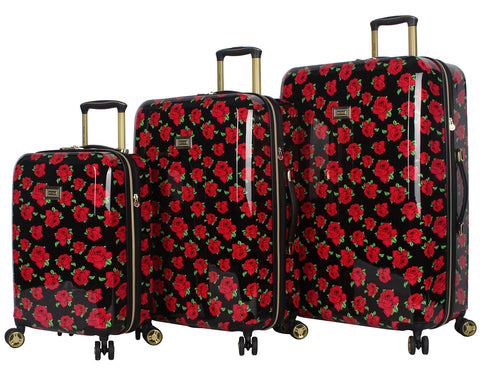 Betsey Johnson Designer Luggage Collection - Expandable 3 Piece Hardside Lightweight Spinner Suitcase Set - Travel Set includes 20-Inch Carry On, 26 inch and 30-Inch Checked Suitcase (Covered Roses)