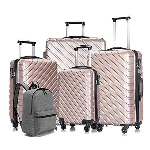 Apelila 5 Piece Luggage Sets,Travel Suitcase Spinner Hardshell Lightweight w/Free Suitcase Cover& Hanger (4PC Champagne Gold With Bag)