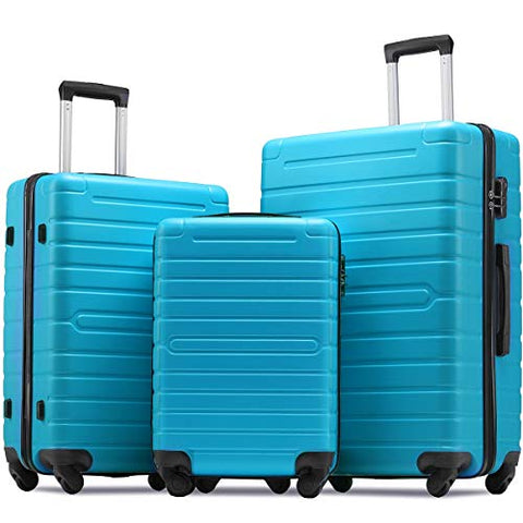 Merax Expandable Luggage Sets with TSA Locks, 3 Piece Lightweight Spinner Suitcase Set (Sky Blue)