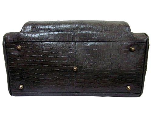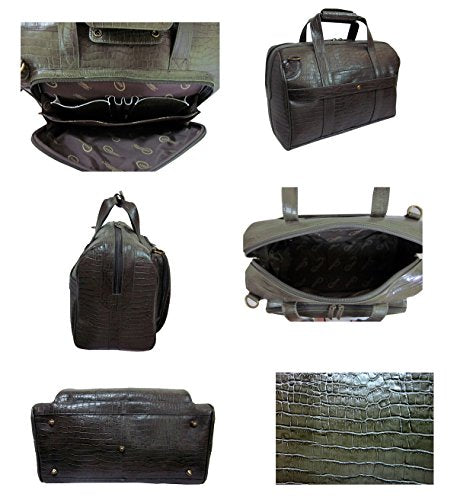 Details: 21-inch upright on spinner wheels features: Genuine leather croco-print construction FAA approved carry-on luggage Removable spinner wheels Two front zippered pouch pockets Top and side carry handles Locking pull-out push-bottom handle Security lock with spare key Detachable and adjustable snap-on "attach-a-bag" strap Business card slot with transparent cover Two interior parallel straps Interior zippered document pocket Interior large zippered mesh side panel Fully lined interior Bonus protective cloth cover Brass-tone hardware One spare spinner wheel included Interior compartment measurements: 18.5 in. H x 13 in. L x 7.25 in. W Product weight: 10.6 lbs Dimensions: 24 in. H x 15 in. L x 10 in. W NOTE: Measurements include handles and wheels. 16.5-inch boarding tote features: Genuine leather croco-print construction Top zip opening into roomy main compartment Two interior side open pockets One interior zip pocket Front zip-around pocket compartment with a center divider, cell phone, accessory pockets, and two pen loops Exterior rear velcro pocket Exterior snap-on strap conveniently slips over telescopic handle on wheeled luggage for easy carrying Five bottom feet protect underside of bag Dual handles snap together for easy hand carrying Detachable, adjustable padded, non-slip cross shoulder strap Brass-tone hardware Fully lined interior Product weight: 4.0 lbs Dimensions: 16.5 in. L x 11.75 in. H x 7.75 in. W