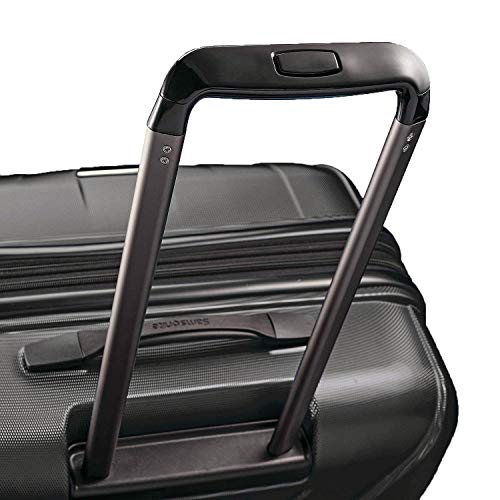Details: 100% Polycarbonate outer shell is more durable than ABS. This durable yet light weight hard side luggage by Samsonite has Durable Spinner Wheels, Push button telescoping handle, Scratch Resistant, and Push button telescoping handle. The Carry on size fits most international airline restrictions.