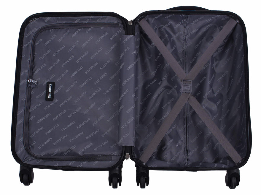 Steve Madden Luggage Signature Collection six-piece set ranges from a roomy 26" upright to an accessory kit you'll want to keep packed in case something comes up. A wheeled duffel and shopper are perfect for short trips or daily adventures. The aircraft grade aluminum handles are extra lightweight while maintaining a high standard for shock absorption.
