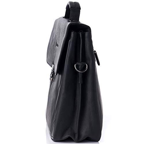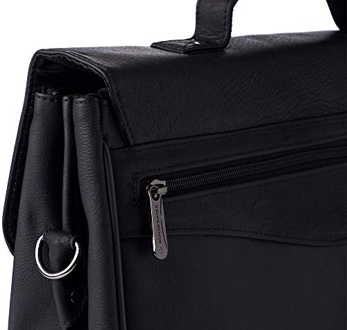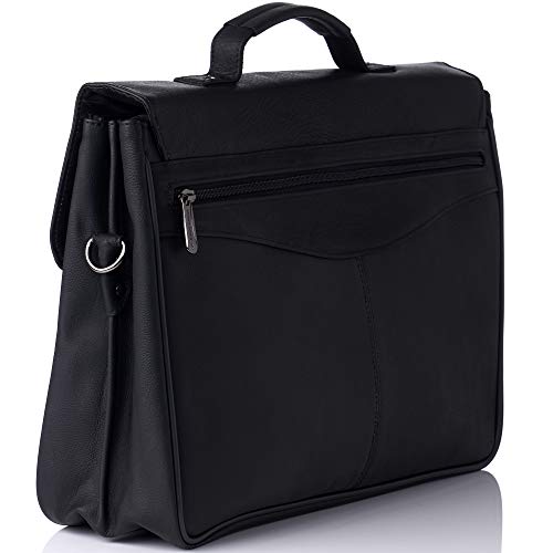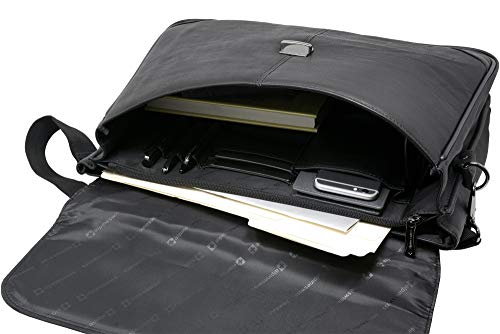 - SMART DESIGN - Flap over tuck lock main closure comes with 2 keys. Comfortable padded adjustable, removable shoulder strap. Double gusset construction with 2 main inside compartments. Middle divider also acts as a zipper file pocket. Carries Letter A4 and Legal-Size documents. Organizer area includes pen, card holders and an expanding 5.5" x 4.5 x 1.25" pouch. Two additional zippered file pockets one inside and an outer back zip file section.