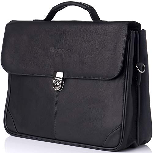 Details: Flap Over Single Lock Briefcase By Alpine Swiss Product Features: Genuine Leather TSA APPROVED PERSONAL ITEM - Measurements 16.5” x 12.5” x 4.5” – TSA approved as a personal item or a carry-on to bring in flight, fits under seats as well. SMART DESIGN - Flap over tuck lock main closure comes with 2 keys. Comfortable padded adjustable, removable shoulder strap. Double gusset construction with 2 main inside compartments. Middle divider also acts as a zipper file pocket. Carries Letter A4 and Legal-Size documents. Organizer area includes pen, card holders and an expanding 5.5” x 4.5 x 1.25” pouch. Two additional zippered file pockets one inside and an outer back zip file section. DURABLE CONSTRUCTION- Leather handle and shoulder strap buckles are attached to the case using metal rivets and plates to insure these do not rip over time with the weight strain. Superior workmanship, well stitched and put together with attention paid to every detail of the construction process. Self-mending zippers and corrosion-resistant metal hardware. Semi-structured construction gives this bag a stable base to stand on its own yet flexible upper to conform as needed. LUXURIOUS LEATHER - Colombian Vacquetta Leather is a durable pebble grain finish leather. This material is made of cowhide and is minimally treated to maintain its natural beauty. Each case can have its own unique characteristic grain and markings as well as color variations. WARRANTY - Comes with Alpine Swiss manufacturer’s warranty. MSRP $295.00 Alpine Swiss donates 2500 meals every day to hungry children in the U.S. and around the world through our partnership with Children’s Hunger Fund. These meals are hand delivered in a Food Pack, which will contain enough food to feed a family of 4-5 for a week to the homes of the needy by trained volunteers in their community, establishing relationships that foster genuine care. Your purchase fuels this effort! Thank you!