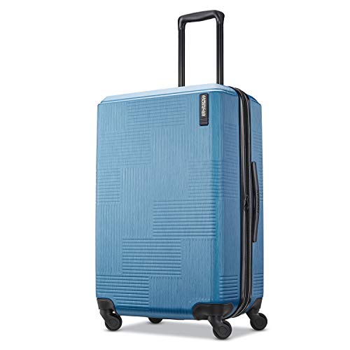 - MULTI-STAGE ergonomic trolley handle, BOOK OPENING CASE with mesh divider and cross straps in main compartment with a zipped modesty pocket, SINGLE SPINNER WHEELS for a smooth ride and straight roll every time, EXPANSION for additional packing capacity, PACKING Dimensions: 24" X 15.8" X 11”, OVERALL Dimensions: 27” X 16.5” X 11.3”, Weight 7.4 lbs., 10 YEAR LIMITED WARRANTY: American Tourister products are rigorously tested to ensure our products meet stringent standards. This set comes with a 10-year warranty against defects in materials and workmanship., 4.0 Wheels
