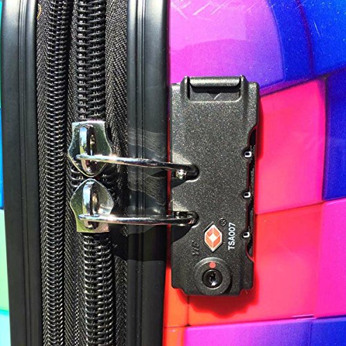 Details: Lightweight PC Composite Construction, Soft-Touch Retractable Carry Handles, Aluminum, Smooth-Action Trolley System, TSA Triple Combination Lock, High Security Double Zipper, Quiet-Ride Double Wheels, Organized Interior with Divider and Mesh Pockets Type: Hardshell Product Features: Lined Material: Polycarbonate Pattern: Graphic Feature: Expandable Exact Color: Multi-color Color: Multi Size: Carry On Spinner: 22" x 14" x 9" (including wheels and handles) Medium Spinner: 26" x 16" x 10" Large Spinner: 30" x 19.5" x 12" Linear: Carry On Spinner: 45" Medium Spinner: 52" Large Spinner: 61.5" Weight: Carry On Spinner: 6.5 lbs. Medium Spinner: 8.5 lbs. Large Spinner: 10.5 lbs.WARNING: Attention California residents: This product can expose you to Bisphenol A (BPA), which is known to the State of California to cause birth defects or other reproductive harm. www.P65Warnings.ca.gov