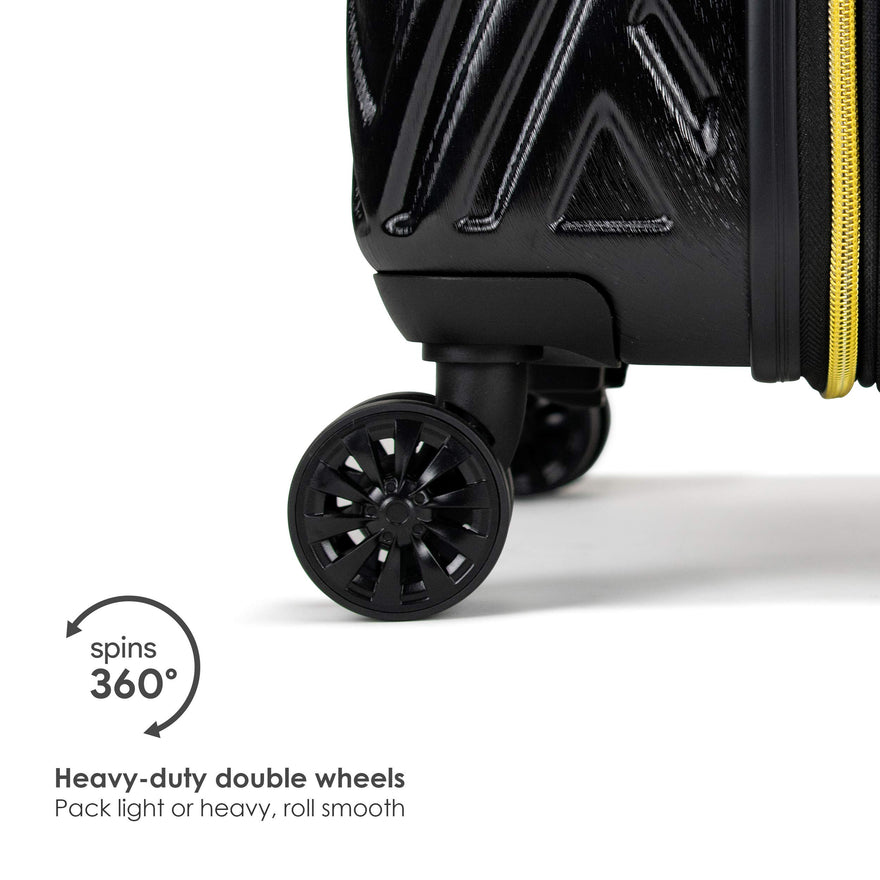 - 8 spinner wheels that roll smooth, allowing the suitcase to handle heavy weights.