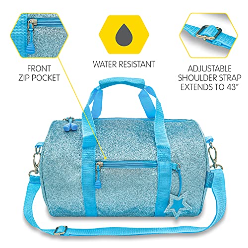 - THE PERFECT GIFT for birthdays, holidays, or before they start their first dance class, this kids duffle bag also works great to store travel accessories, or for an overnight stay at grandmas house! Kids will love the sassy, turquoise Sparkalicious Duffle Bag any time you need to pack up and go in style.