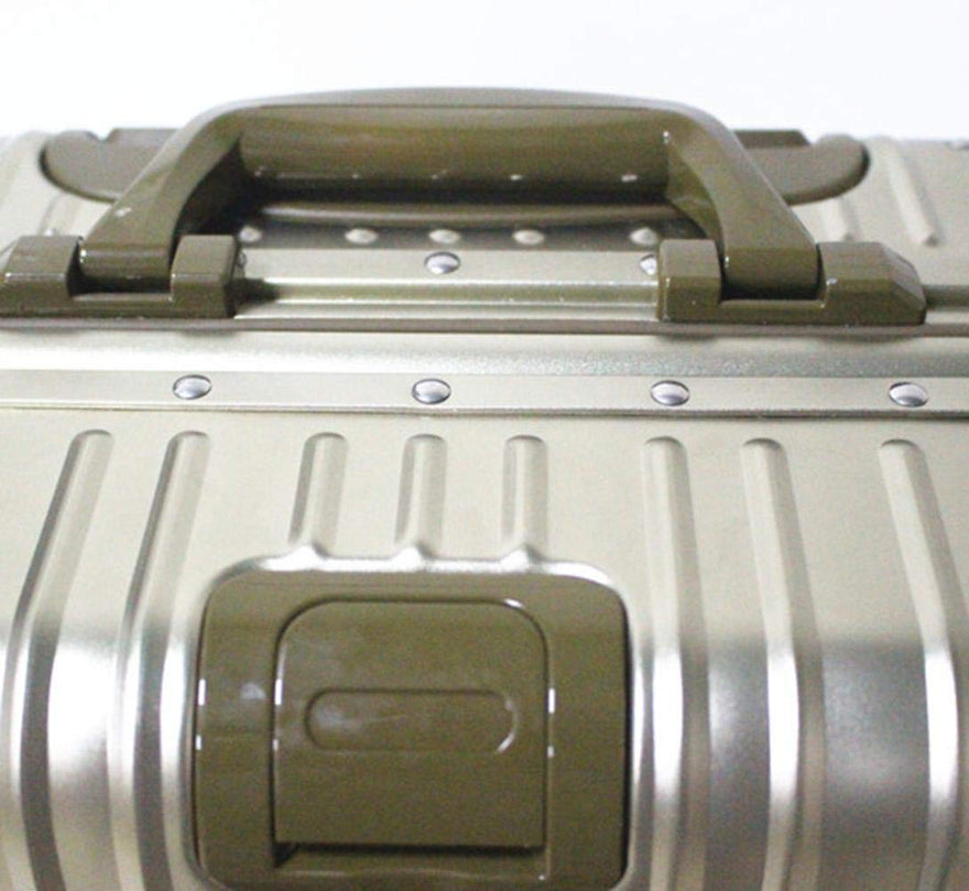 Details: Boarding suitcase, aluminum-magnesium alloy trolley case, durable PC luggage case, with TSA lock rotating wheels