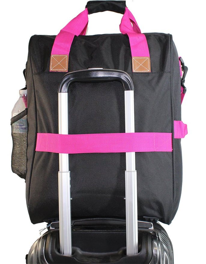 • Multiple pockets for bottle, ipad pocket, accessories, etc. One back strap (A bag can be strapped on top of another carry on)