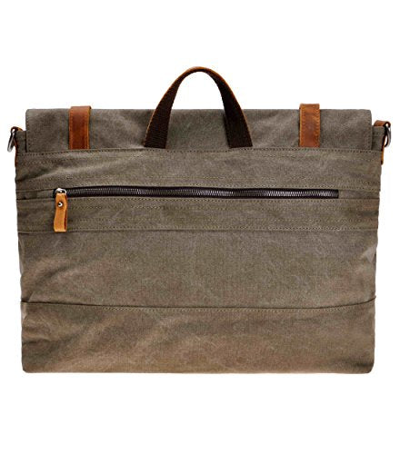Men's vintage messenger bag, can be also used as a business briefcase. Made of cow leather and high density canvas. It has cotton linings and strong bearing capacity. Features a main compartment, two inner pouches for a phone or credit / business cards, two inner zippered pockets and a back zippered pockets. Comes with a long detachable shoulder strap. Nicely designed, not too formal nor casual, perfect for work or leisure time.