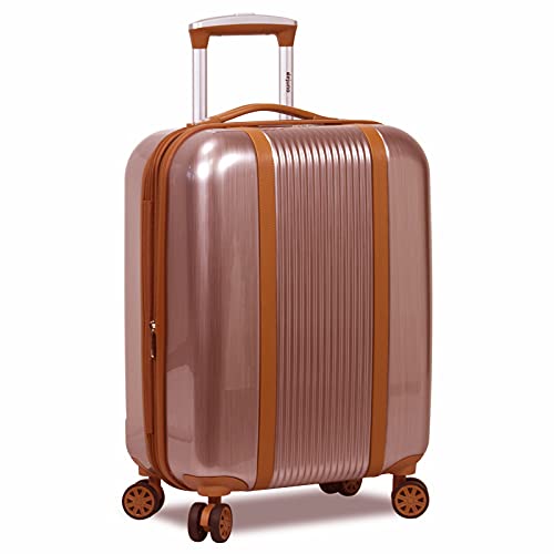 - Polycarbonate shell construction with high gloss Brush finish, expands 2 inches for more packing capacity, fully lined interior, dual interior zipper compartment with large mesh zipper pocket and compression straps with buckle