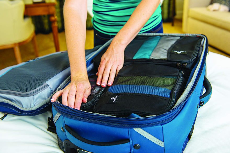 Details: Eagle Creek Pack-It Original Starter Set. Use these packing organizers to maximize space and keep your belongings in place. Once you arrive, your clothes will have a home away from home and you'll know where everything is, giving you peace of mind and making travel a little easier. Mesh tops are breathable to offer visibility and ventilation. Packing folder holds 8-12 shirts or pants and comes with a folding board for neat folding. Machine Washable.