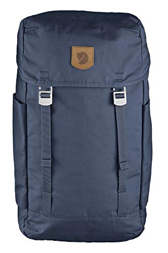 Details: Classic, top-loaded rucksack in hard-wearing G-1000 Heavy Duty Eco S. Just as suitable for everyday commutes as for excursions into nature. Stash your essentials in the spacious main compartment with drawstring closure, the inside padded laptop sleeve (fits laptops up to 15"), the large zippered pocket on the front, the zippered pocket on the top lid, and the side pockets. Made with recycled polyester and organic cotton. The Greenland features straps and metal hooks to keep the top lid in place, a drawstring closure to keep snow and debris out, padded shoulder straps, and a padded back panel. Protect with Greenland Wax. Volume: 20 liters.