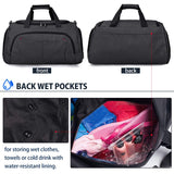 - ✔ ROOMY & MULTI FUNCTIONAL POCKETS - Travel duffel bag has plenty of storage with 11 different sizes pockets, including 1 enormous main compartment with a two-way metal zipper to keep all your important belongings, 2 front pockets and 1 back Wet pocket, 2 side pockets. With the wet pocket, for storing wet clothes or towels after you exercise or changing clothes, for bottle, umbrella, shampoo, body wash and facial cleanser, best for your sporting or traveling necessities.