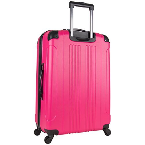 Details: Abs 28-inch 4-wheel upright. 4-wheel spinners allow for full 360 degree mobility. Lightweight construction. Durable abs exterior with molded corner reinforcement for maximum impact resistance and fully lined interior. Interior main compartment features garment restraints and a zipper pocket. Lid features a large u-shaped zipper pocket. Convenient and flexible top and side handles allows for easy lifting. Side bezels allow upright to stand on its side. Four wheel construction allows uprights to be rolled in any direction. Retractable locking handle system. Size 29.5-inch hx20.5-inch wx11.75-inch d. Weight 9.6 lbs