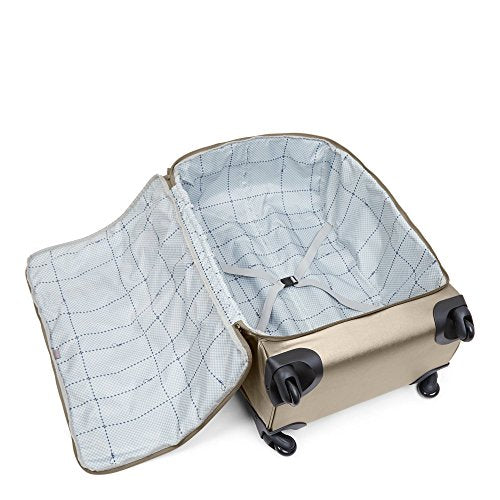 Details: The largest style in Kipling's Darcey Wheeled Luggage Collection is sized to carry clothing, toiletries, and shoes...lots and lots of shoes. An ideal suitcase for international travel and epic vacations, this durable crinkle nylon luggage is easy to maneuver thanks to its four, 360-degree spinning wheels and soft carry handles. The soft nylon exterior is durable, versatile and water resistant, while interior features packing straps to keep you organized on your adventure.