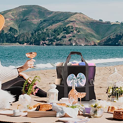 - 【Bottom Reinforcement & Sandproof】The bottom of beach tote bag is made of Mesh lineing + 600D Oxford cloth + 3mm MDF borad at the bottom ,environmentally friendly materials and no unpleasant odor which will not mildew, rot, be ripped or torn.Small mesh design prevents sand from entering.