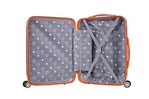 Details: "This 3 pc. Set is made of ABS. The major benefits of this material - it is extremely lightweight, it is durable, and protects the contents of your luggage. Eight multi directional spinner wheels rotate 360 degrees for easy maneuverability. This luggage allows you to pack more while avoiding the excess weight surcharges imposed by most airlines. • Multi-directional spinner wheels for easy maneuverability • Modern internal chrome telescoping handle with push button handle. • Interior mesh and zip pocket and elastic pocket *5 year warranty * 20"X13"x9" weighs 6 lbs, 24"x15x10 8 lbs, 28"x17"x12" weighs 10 lbs."