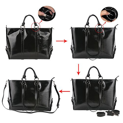 S-Zone Women'S 3-Way Genuine Leather Work Tote Laptop Shoulder Handbag Messenger Bag Fit 14" Laptop