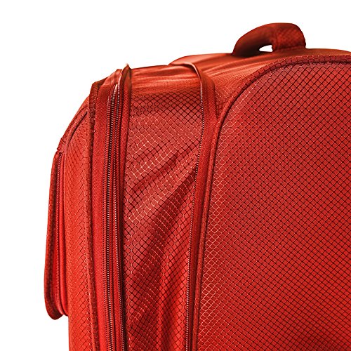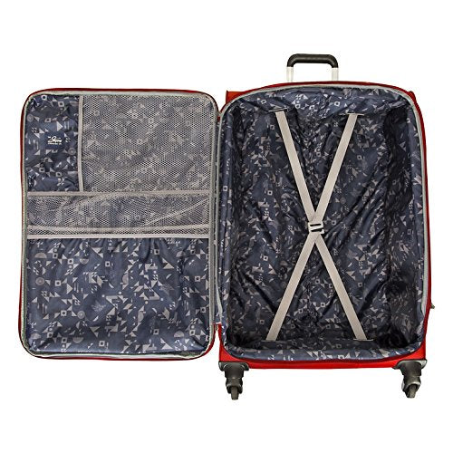 Details: Big adventures are even better with this large spinner case from our ultra-lightweight Mirage 2.0 collection. The resilient ripstop fabric stands to the rigors of the road, while the sturdy spinner wheels and retractable trolley handle help you roll smoothly from point A to point B. Loaded with smart organizational features, this expandable case boasts an innovative mesh door organizer with zipperless pouches for socks, accessories and other items, while a padded exterior compartment allows for last-minute packing of essentials. Cushioned top and side carry handles make baggage claim retrieval a breeze.