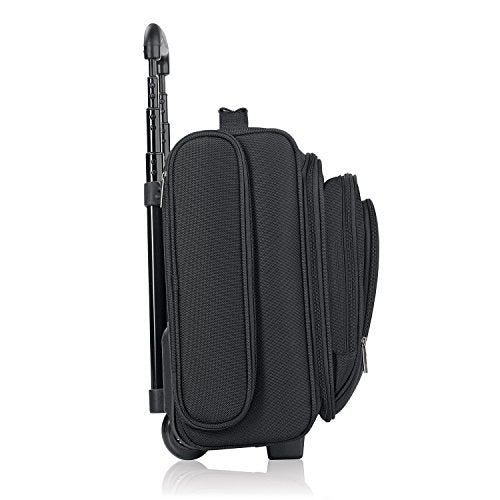 Details: This rolling overnight laptop case by Solo has many features that will help make your daily office commute easier. The padded compartment protects laptops up to 15.6”. The front zip-down organizer section helps you stay organized on the go and the front zippered accordion fan file makes it easy to organize and file high priority materials. The telescoping handle system makes it easy to retract the handle for a more compact rolling case. Comes with a 5 year warranty.