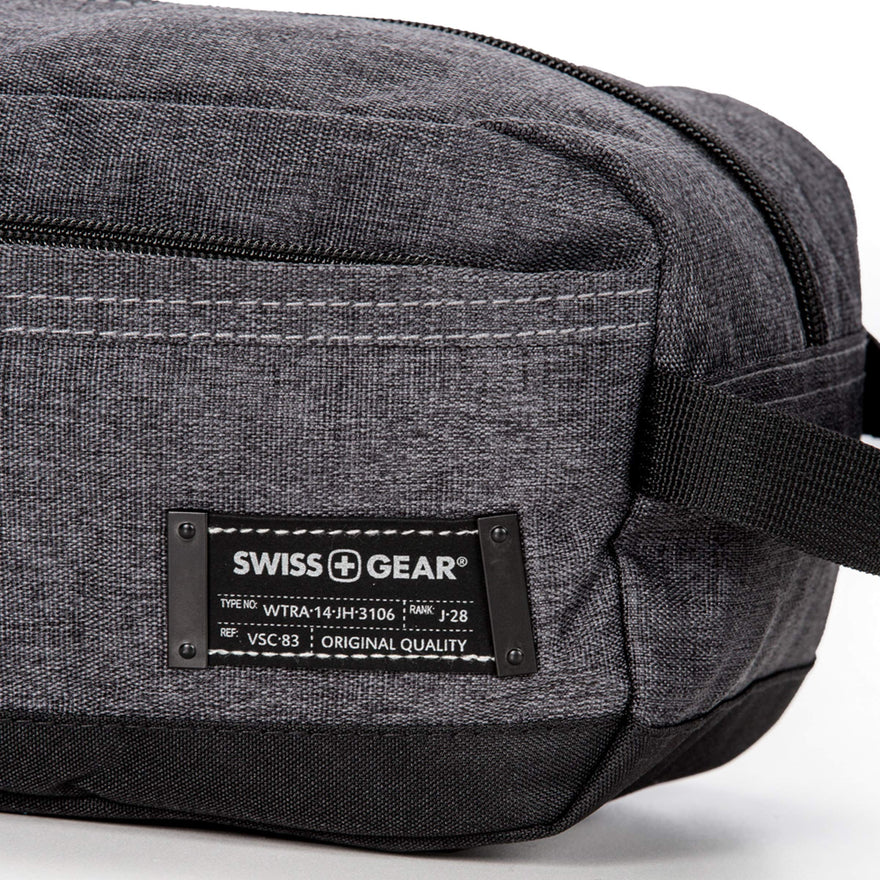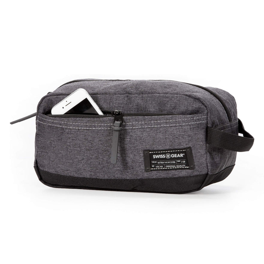 Details: Rely on the incredibly durable Swissgear 2367 Dopp Kit during your next endeavor. Adorning a classic black and gray interior, this traditional amenity kit has plenty of room for your toiletry items and accessories. Fit frequently used essentials inside its large zippered front pocket; grab its sturdy webbed pull handle and neatly store it inside your Swissgear backpack or luggage.