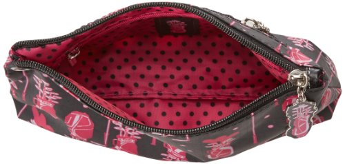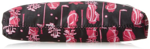 Details: Sporty and fun golf bag print. Accented with black trim. Four tee holders on front and back zipper pocket with golf ball zipper pull. Top zip entry with lady's golf bag zipper pull. Interior fully lined with signature Sydney Love polka dot lining. Interior side zipper pocket.