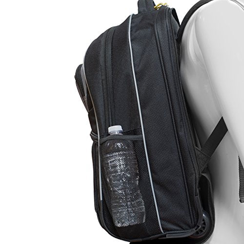- Innovative velcro straps attaching the rear panel to the base to cover wheels