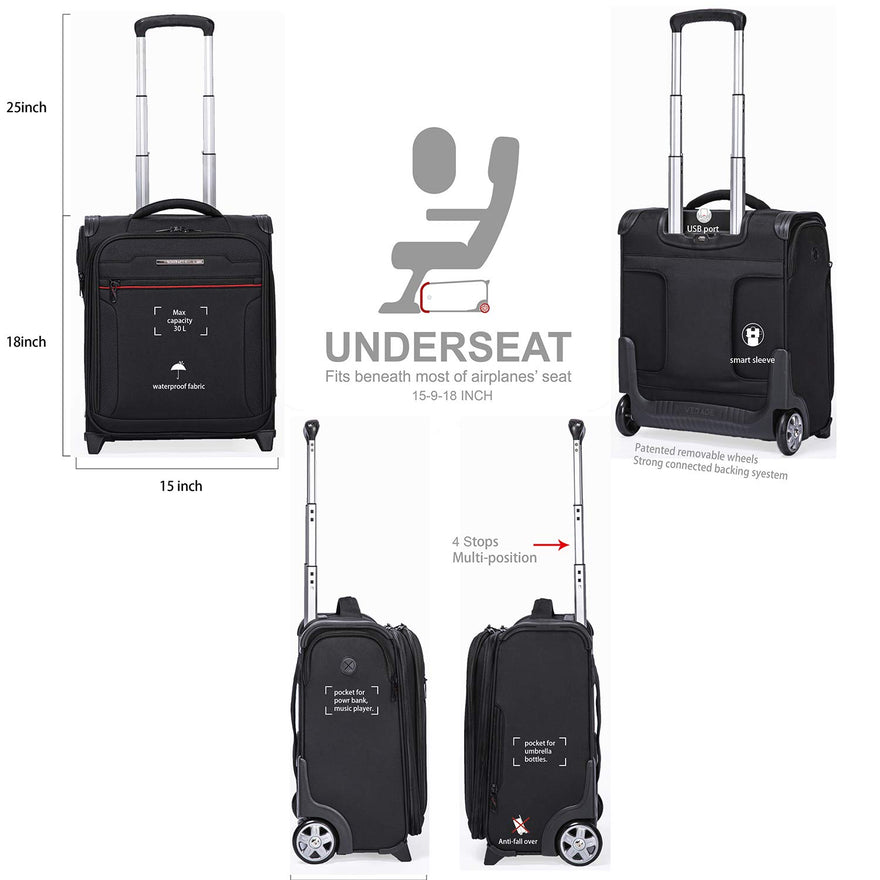 - ✈[DURABLE]:VERAGE rolling wheeled underseat softside carry on luggage is designed for organization, mobility and convenience; Polyester fabric exceptionally resistant to abrasion, punctures,and tears, and water-resistant;High tensile strength safty zipper provide lasting durability ,anti-burst and anti-theft double protection.