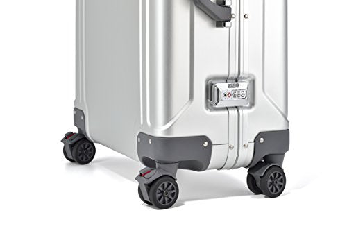 • Made in USA from imported Materials. Utilizes premium anodized aluminum that is as strong as steel but only one-fourth the weight. Innovative and unique double-rib design provides additional strength and durability as well as optimum protection of its contents. The intuitive 3-stage dual-button handle system allows for quicker release for both left and right-handed travelers.