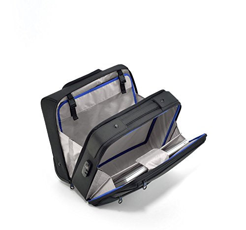 Details: The ZERO NEW YORK - Greenwich Nylon 2-Wheeled Business Case is the perfect briefcase for people on the go. Made with 420-denier Cordura Nylon with 610-denier Cordura Polyester Accents - strong, durable, and attractive.Two functional exterior pockets on the front panel for premium organization and quick access.Two core gusseted packing compartments for files, laptop (padded) , and a change of clothes for overnight travel.TSA-accepted Combination Lock on the outside for added security.Self-healing YKK Nylon-coil zippers with easy-grip zipper pulls.5-stage pull-up handle for controlled mobility.Solid and quiet precision wheels with wide-tread grip.Includes a fully-lined, stain-resistant interior.Blue color-pops are infused on zipper pulls, select interior seams, and the pull-up handle. Dimensions: 15.0W x 9.0D x 16.0H inWeight: 6.4lb