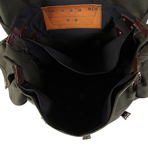 Details: Clip-on sternum strap to help alleviate shifting of shoulder straps. Large main compartment with three built in slash pockets and one deep tarp/sleeping pad sleeve to help cushion your back. Side pockets provide quick access to everyday necessities. Soft padded leather shoulder straps riveted for extra reinforcement. Guaranteed for life. Made in the USA.