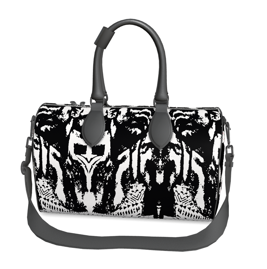 The West COST Dripper Leather Duffle Travel Bag original artwork +leather work strap included for easy carry-on Gold, gunmetal, or nickel metal hardware Beautifully painted edges Three thread colors: gray, cream, or charcoal Black faux suede inner lining Detachable/adjustable webbing strap Double zip with black leather zip pullers Metal studs on the base for floor protection Large: 9.1" x 20.1" x 11.2", 3.3 lbs Inner pockets: Large - 1 zipped, 2 open Unisex design, perfect for men and women Handcrafted on demand