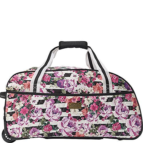 Details: When traveling we like to avoid the stresses and just roll with it! our "out of office" rolling duffel bag is easy to maneuver, perfectly sized to fit overhead, and totally glam when running to the runway. In a fabulous floral over stripe print, it ties back to the "out of office" luggage lining for a fully coordinated look to make sure you are looking' fly! this rolling duffel bag offers plenty of storage inside a large main compartment, easily rolls on in-line wheels, and has a gold finished telescoping handle. Macbeth collection is world renowned for putting the "fun into function" and this luggage is no exception. Margaret josephs is a true jet-set gypsy and loves to travel. Each of the Macbeth collection luggage pieces has been designed to be the ultimate travel companion.