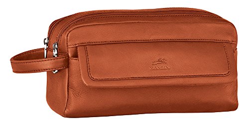 Details: Our COLOMBIAN Collection toiletry kits are at once elegant and smart-casual combined with a sprinkling of nostalgia. These timeless pieces are lovingly hand crafted from supple drum dyed top grain Colombian leather.This double zipper toiletry kit has an abundance of room to hold all your grooming products and more. Fully lined with multiple interior pockets._x000D_ Two zippered main compartmentsMultiple interior pocketsRear zippered pocketFront pocket with magnetic flapConvenient wrist strapDimensions: 10.25" x 3.5" x 5.5"Weight: 0.8 lbs / 0.36 kgs