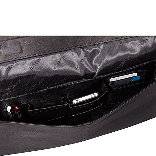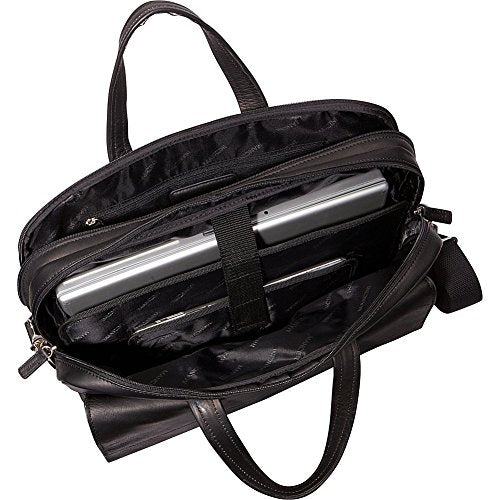 Details: Carry your laptop, tablet, and other must haves for the daily commute inside this sophisticated leather briefcase from Mancini Leather Goods. The Mancini Leather Goods Colombian Leather Double Compartment Laptop Briefcase is constructed from soft and supple Colombian leather and features a dual compartment design that offers safe storage for all of your most important personal and professional items. This briefcase includes padded sleeves to hold your laptop and tablet, a rear zipper pocket to hold valuables, a roomy compartment to hold files and documents, and a flap front organizer with pen sleeves and slip pockets to hold your cell phone, business cards, and other small accessories.