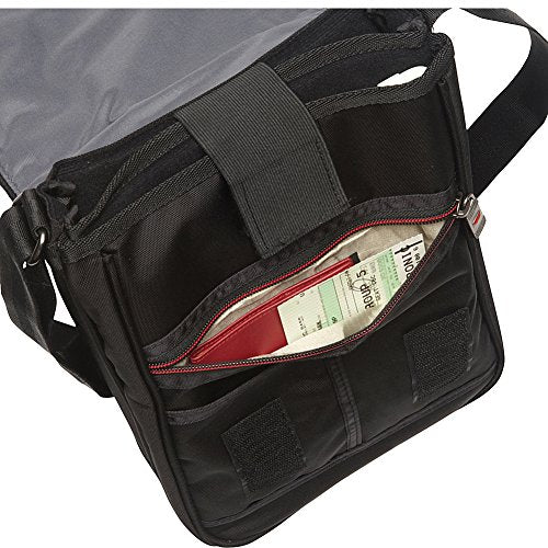Details: Carry your tablet and other essentials in style inside this versatile messenger bag from Mancini Leather Goods. The Mancini Leather Goods RFID Messenger Bag for TabletE-Reader is made from high performance ballistic nylon and features an extra-small shape in a flap front silhouette with multiple pockets for organization. This messenger bag includes a felt-lined and padded pocket for your tablet or eReader, a second padded compartment to hold discs or delicate items, and RFID blocking technology to protect you from identity theft. An interior pocket offers safe storage for your cell phone, while exterior zipper pockets on the front and back provide added storage for any small items that you need to keep within easy reach.