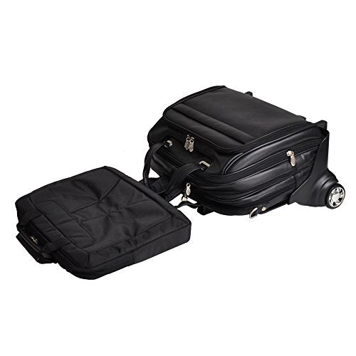 Details: Patented 2-in-1 Detachable Wheel and Handle System. Secure, detachable patent pending Fly-Through Checkpoint-Friendly laptop sleeve design. Laptop sleeve padded with high-density foam fits most laptops 15.6" in screen size. Adjustable, non-slip, shock absorbing shoulder strap alleviates body strain. Front organizer with storage space for media devices, cell phone, business cards, key holder and pens. Expandable front compartment features 2 small pockets and storage space for files.