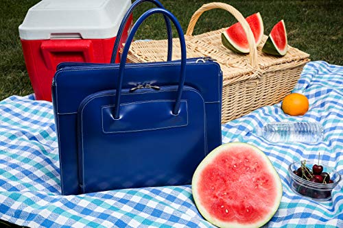 Details: Multi-use briefcase offers a sleek contoured design. Front organizer zipper section with storage space for media devices, business cards, key holder and pens. Top zipper allows easy access to the main compartment. Interior zipper pocket helps organize. Double compartment divided by secured zipper pocket. Laptop compartment protects laptops up to 15" in screen size. Tablet pocket. Practical and stylish tubular leather arm straps. Removable shoulder strap included. Smart strap allows easy attachment on extended handles of other rolling cases.