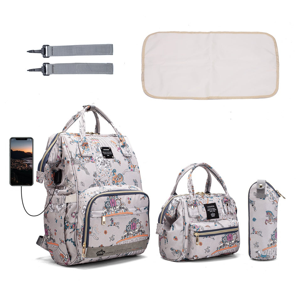 Suurel kotil on eraldi termotasku joogipudelile, alumiiniumvoodriga taskud piimapudelitele, ning spetsiaalselt salvrätikutele disainitud elastne küljetasku. Lisaks on kotil olemas ka USB liides, mille abil saad näiteks telefoni laadida või piimapudelit soojendada.