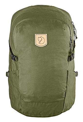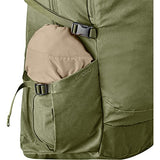 Details: Lightweight, versatile daypack for hiking or commuting on foot or by bicycle. Made from durable G-1000 Eco in recycled polyester and organic cotton. The carrying system is light and stable with comfortable padded shoulder straps and a mesh back panel. There is also a chest strap with a whistle and hip strap that can be stowed behind the back panel when not in use. The main compartment has a zippered opening and an inside security pocket with a key clip. There is also an open pocket that is big enough to hold a 15 inch laptop computer, or that can be used to carry a hydration bladder (not included). A front pocket with zipper and inside pocket have room for items you want to keep close at hand, and there are two expandable side pockets with strap adjustments. Compression straps on the sides stabilise the contents of the pack when it is not fully loaded. The G-1000 Eco fabric is waxed and resists moisture. For persistent rain there is a rain cover provided that can be stowed in one of the inside pockets.