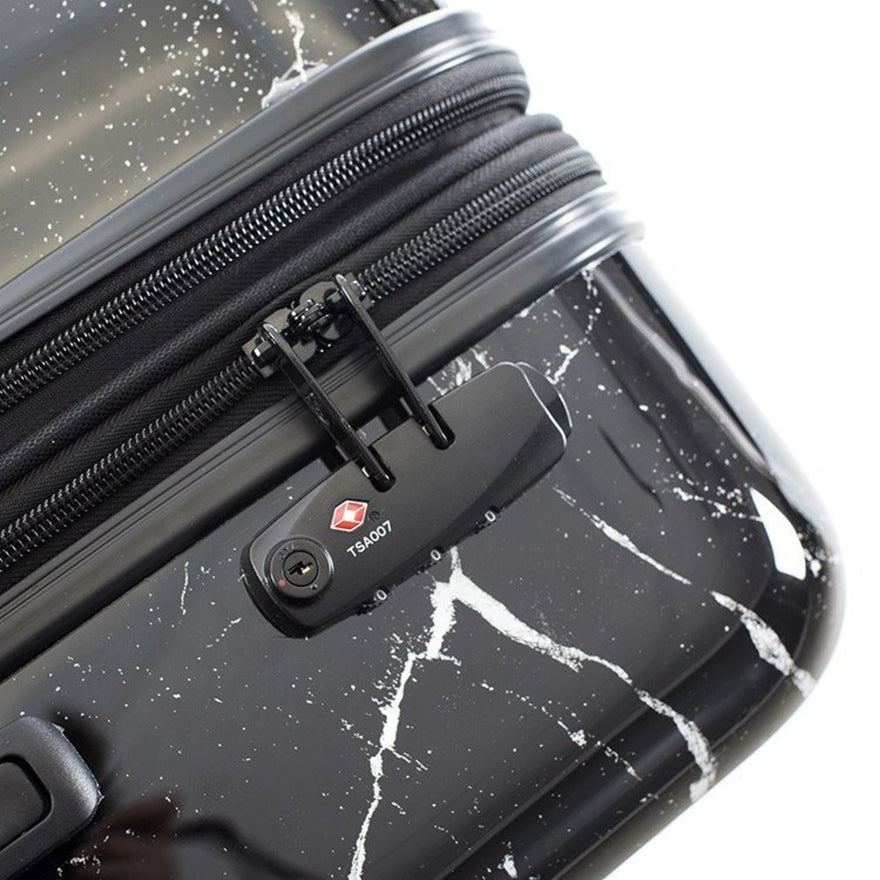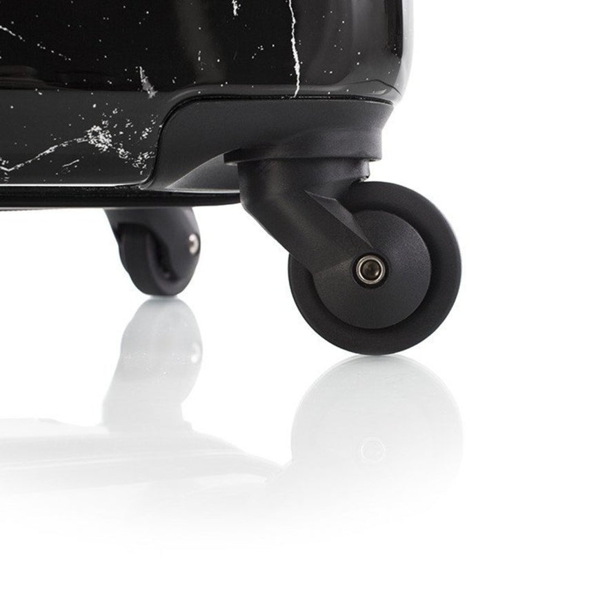 Details: The Marquina 26" Hardside Spinner from Heys America allows you to travel in fashion with a marble inspired exterior. The spacious interior is fully lined with stylish fabric, multiple zip pockets, and tie-down straps.