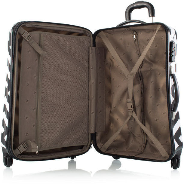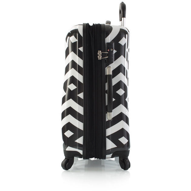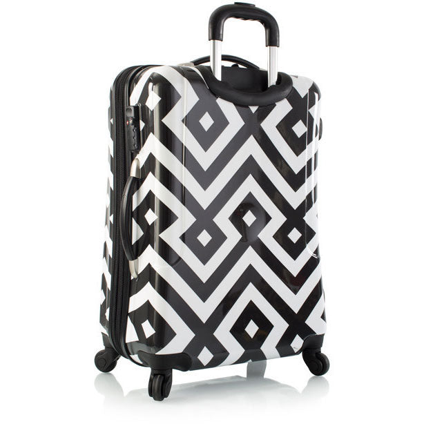 The Deco Spinners give new meaning to the term lsquo;fashionable luggage. Featuring a dynamic geometric pattern, this Heys Deco 26 inch Spinner makes a bold fashion statement. The vibrant luggage print is protected by a layer of clear coat which also gives it a beautiful glossy shine, and is sure to stand out from the crowd.